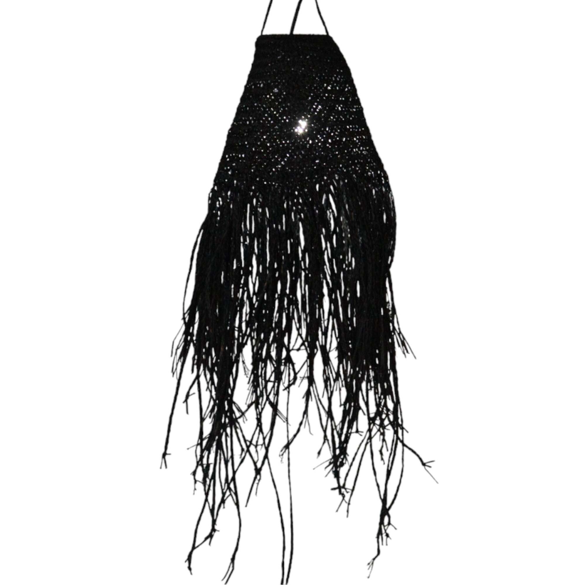 Czarny Abażur Pleciony z Doum – 20×15 cm
