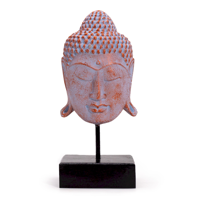 Duża Głowa Buddy Serenity na Podstawce – Niebieska Patyna