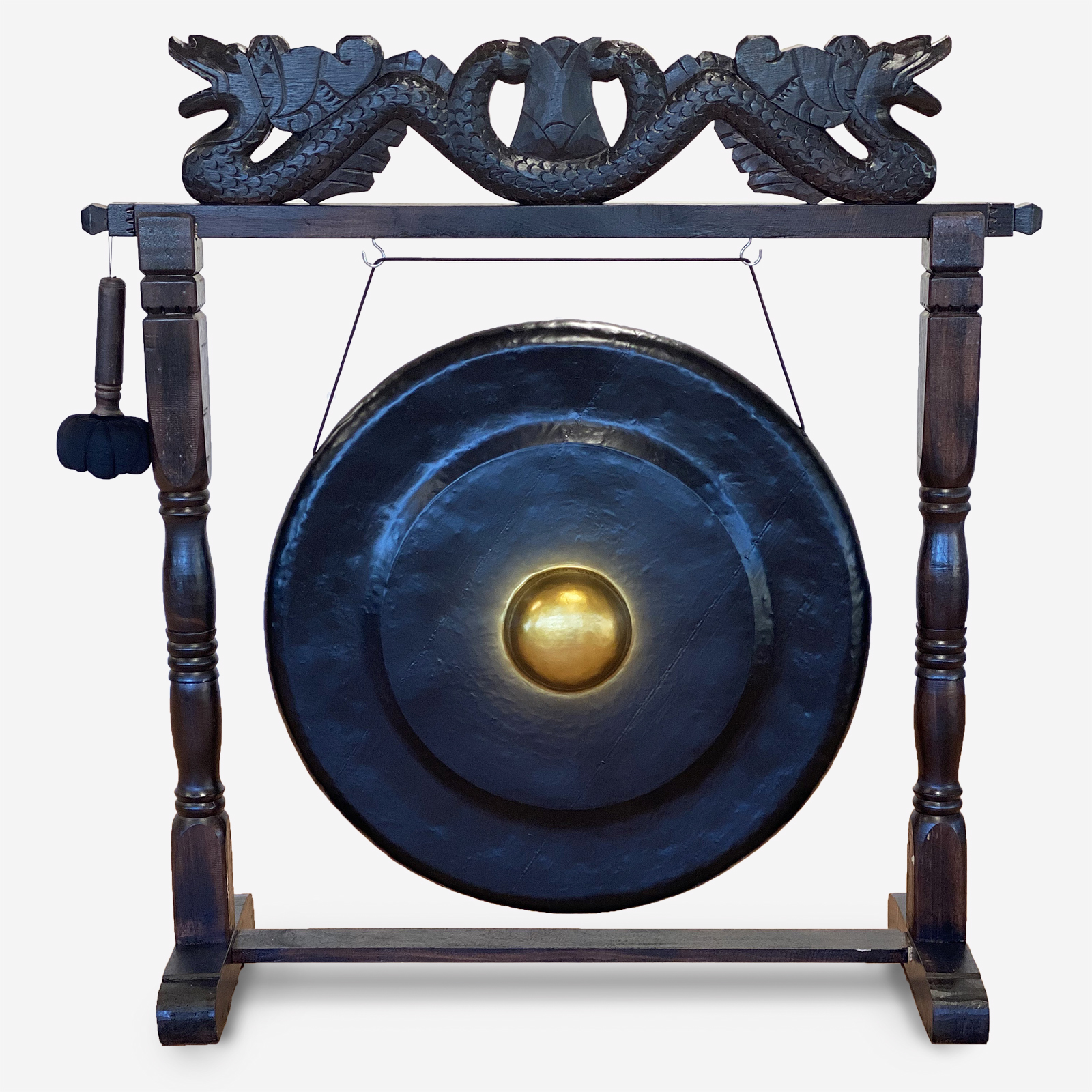 Duży gong w brązowym antycznym stojaku – 80 cm – Czarny