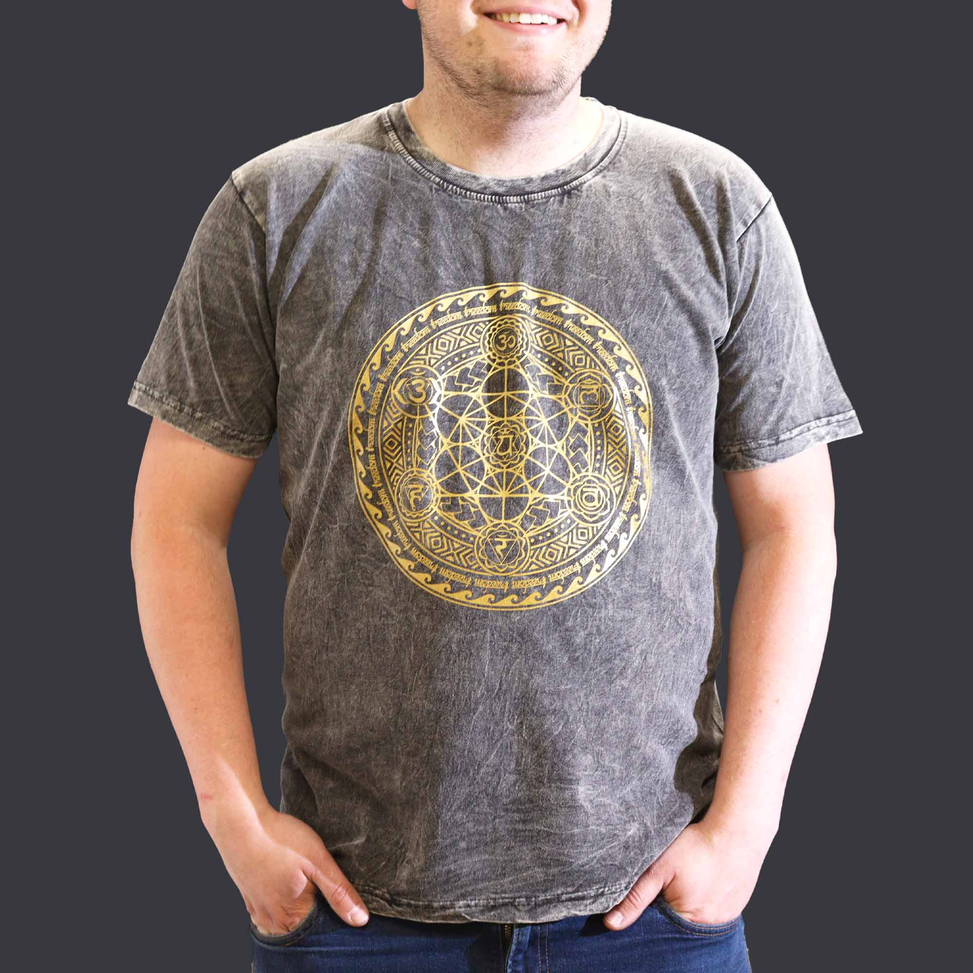Koszulka Stone Washed XL – Czakry – Ciemnoszara