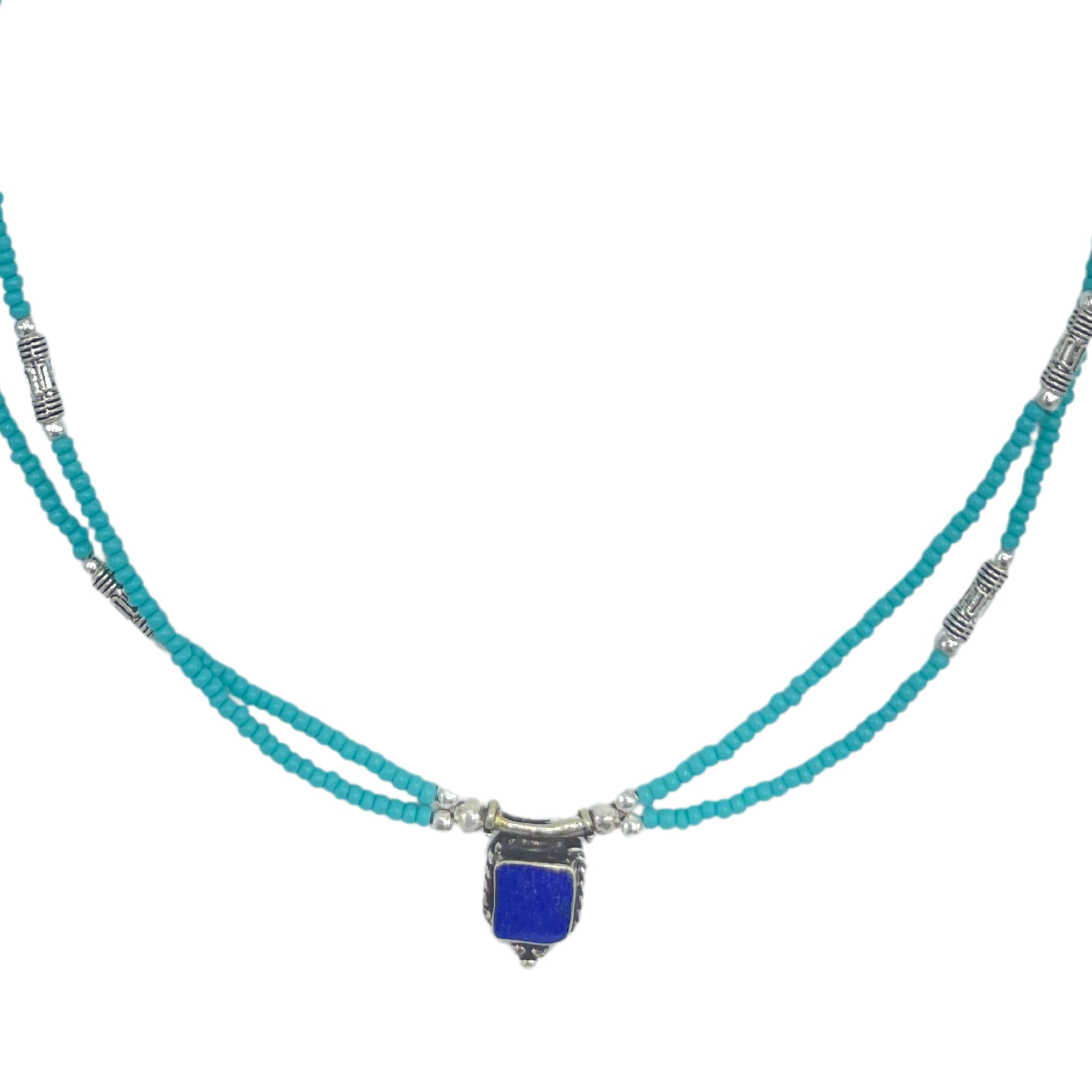 Naszyjnik Nepalese Extra Fine z dwiema liniami – Turkus & Lapis wisiorek