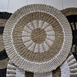 🔸Darmowa wysyłka od 200złOkrągła dekoracja z trawy morskiej biało-beżowa o wzorze Wewnętrznego Słońca to symbol życia i pozytywnej energii. Naturalne materiały wprowadzają harmonię do przestrzeni. Idealna do salonu lub sypialni.