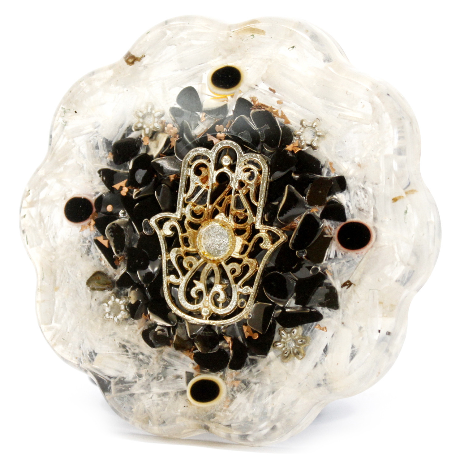 🔸Darmowa wysyłka od 200złOrgonite Desk Power Packs – Hamsa with Sellonite – Med wspiera duchowy rozwój, medytację i ochronę energetyczną. Idealny do rytuałów, praktyk intencyjnych i wystroju magicznej przestrzeni.
