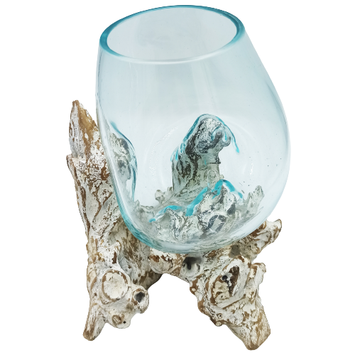 Szklana misa wtopiona w bielone drewno – duża